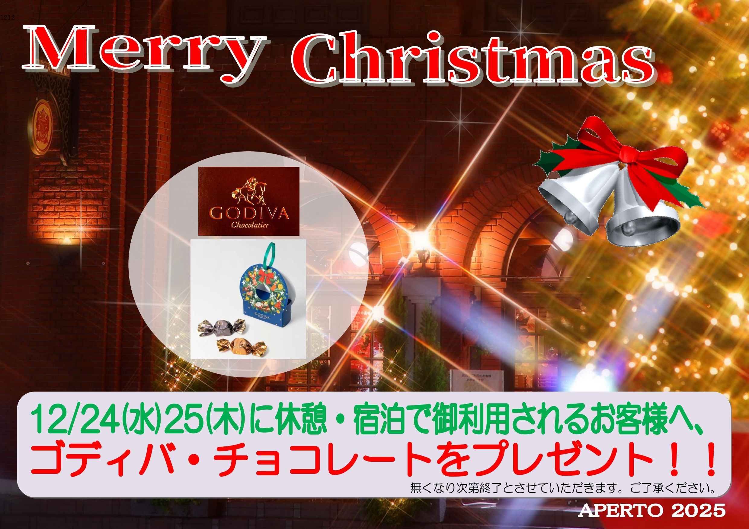 日頃の感謝の気持ちを込めまして、クリスマス期間(12/24・12/25)に御利用される客様へ、